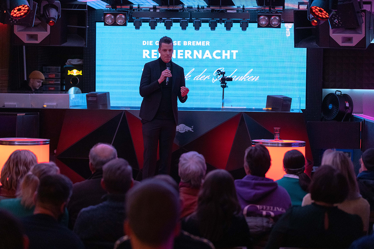 Am 17. November 2022 haben 13 Redner:innen das erste Feuerwerk der Gedanken gezündet. Die Zuschauenden und Render:innen waren begeistert. Vom Sinn des Lebens bis zu einer musikalischen Einlage war für Jeden etwas dabei. Von der Presse begleitet ist eine Welle losgetreten worden, die auch noch Wochen nach der Veranstaltung anhält. Es war eine vollkommen gelungene Veranstaltung. Durch diese große Welle, wird der nächste Rednerabend am 04.11.2023 im Kulturzentrum Schlachthof Bremen stattfinden. Noch größer und bunter und mit vielen Übertaschungen für die Zuschauenden, als auch für die Redner:innen. Am 17. November 2022 haben 13 Redner:innen das erste Feuerwerk der Gedanken gezündet. Die Zuschauenden und Render:innen waren begeistert. Vom Sinn des Lebens bis zu einer musikalischen Einlage war für Jeden etwas dabei. Von der Presse begleitet ist eine Welle losgetreten worden, die auch noch Wochen nach der Veranstaltung anhält. Es war eine vollkommen gelungene Veranstaltung. Durch diese große Welle, wird der nächste Rednerabend am 04.11.2023 im Kulturzentrum Schlachthof Bremen stattfinden. Noch größer und bunter und mit vielen Übertaschungen für die Zuschauenden, als auch für die Redner:innen.